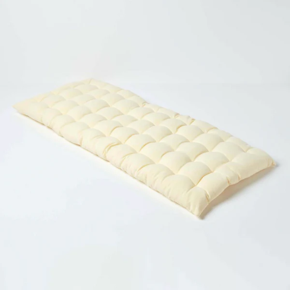 - Materiały wysokiej jakości: Mata wypełniona jest w 100% włóknem poliestrowym i pokryta całkowicie bawełną, dzięki czemu jest miękka i wygodna, a jednocześnie bardzo trwała.